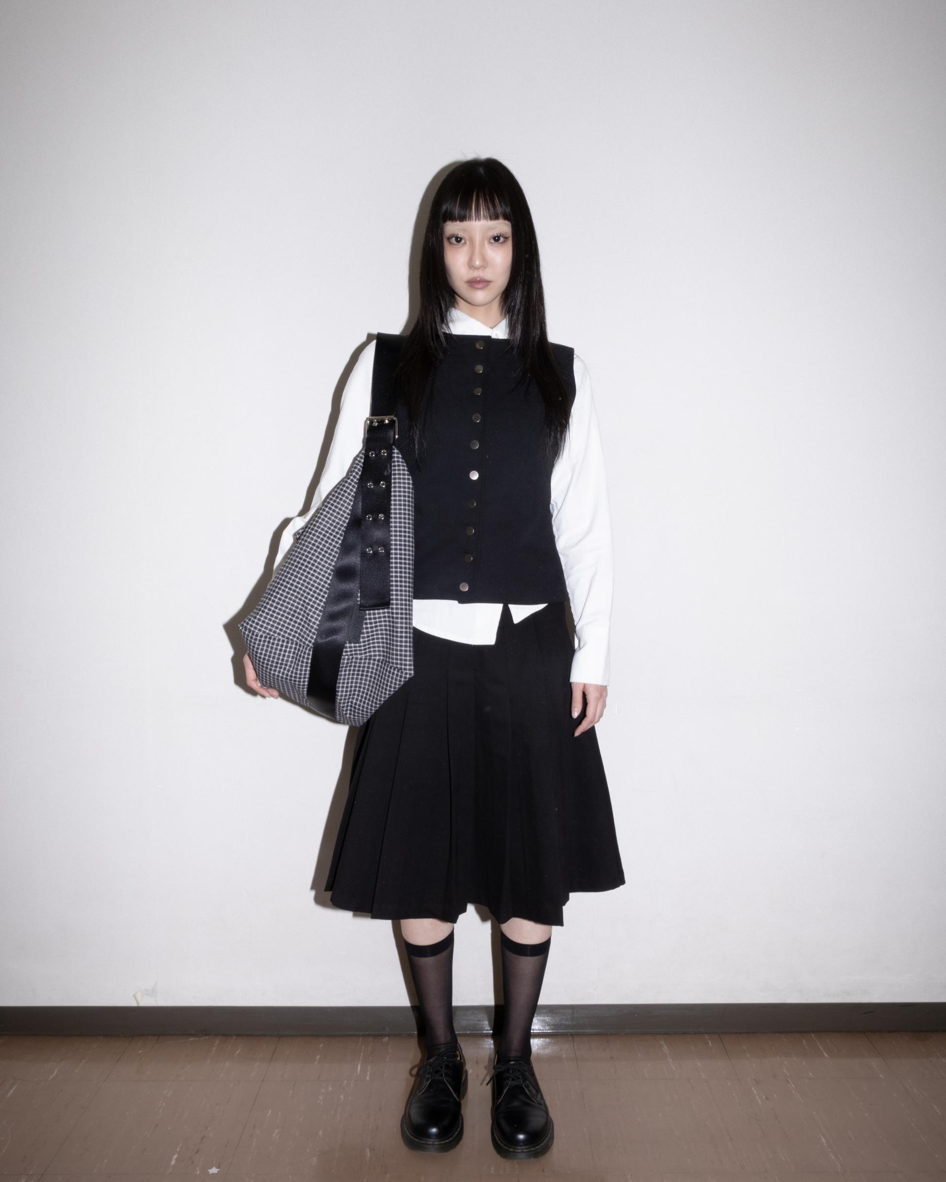 블랙 체크와 블랙 웨빙 스트랩 조합으로 매칭 되었습니다.