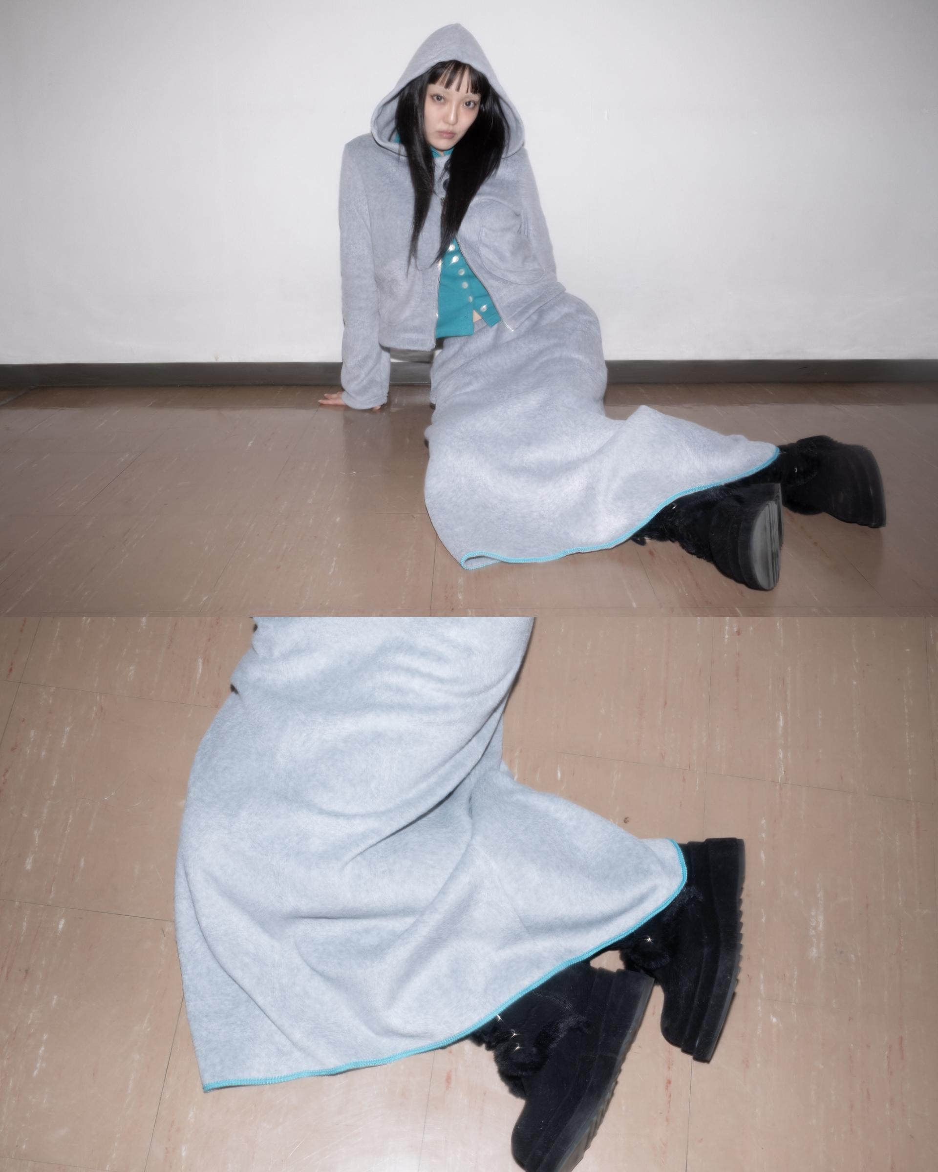 포근한 플리스 원단으로 제작된 롱 스커트입니다.