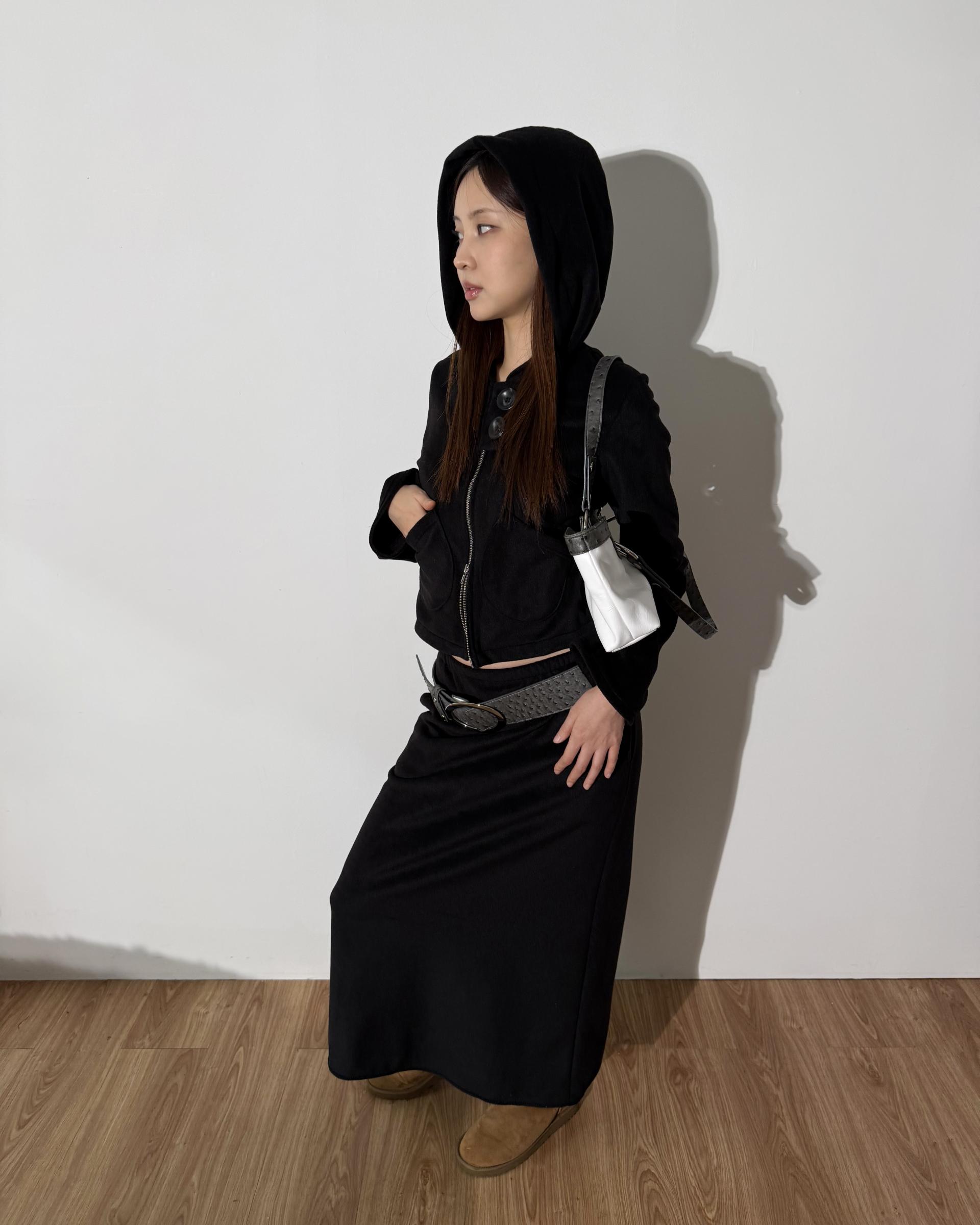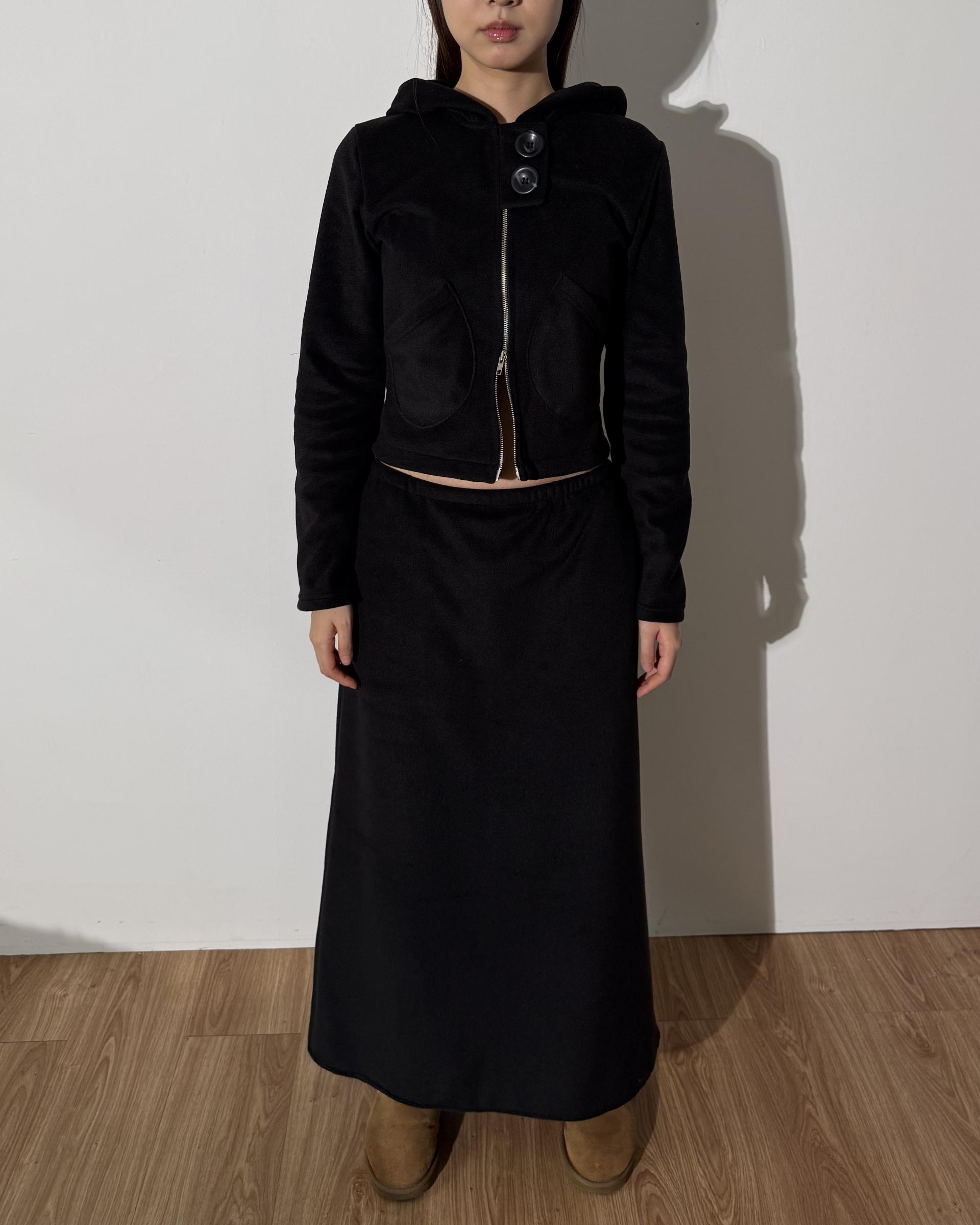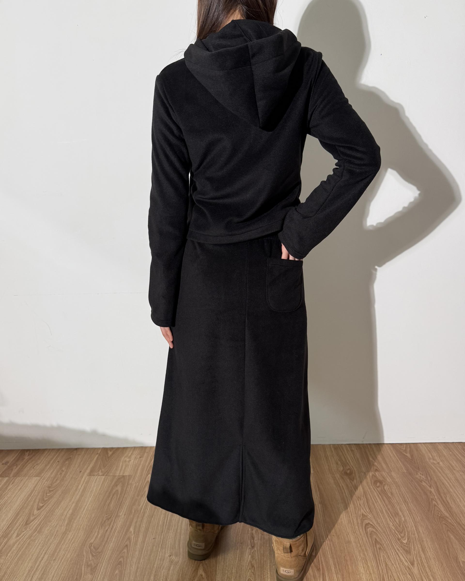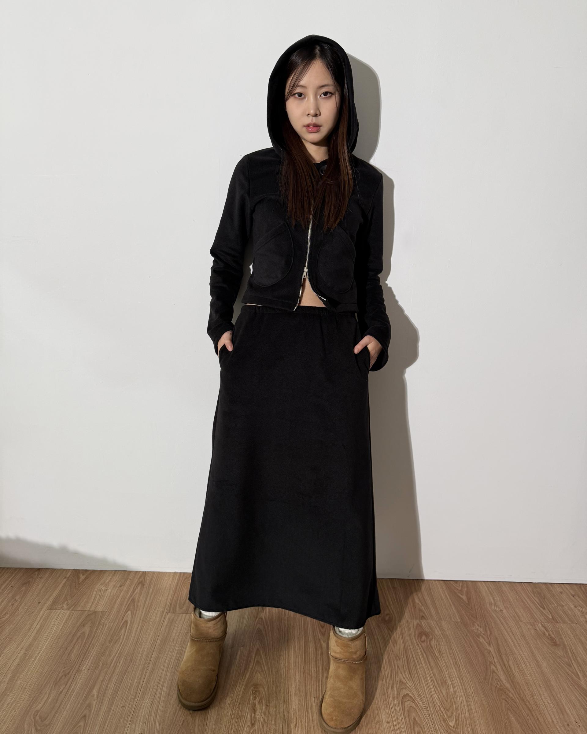 포근한 플리스 원단으로 제작된 롱 스커트입니다.